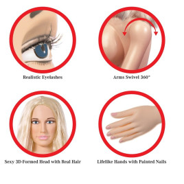 Questa incredibile bambola gonfiabile a grandezza naturale è stata progettata meticolosamente con caratteristiche realistiche per un39esperienza davvero realistica. La sua sexy testa sagomata in 3-D presenta ciglia realistiche e una lussuosa testa di capelli veri che chiede di essere tirata! Guardala prendere vita con le braccia che ruotano di 360 gradi e le unghie delle mani e dei piedi dipinte in modo delizioso. Stringi il suo seno sodo e vivace mentre ti godi la sua pelle, la sua figa e il suo culo ultra realistici Fanta-Flesh ? che si sentono anche meglio della cosa reale! La fica e il culo Fanta-Flesh ? sono rimovibili per una facile pulizia profonda e possono anche essere gustati separatamente per la masturbazione. Una pompa di gonfiaggio, un kit di riparazione in vinile e le istruzioni sono comodamente inclusi.