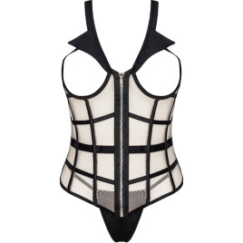 Un set in due pezzi composto da un corsetto sensuale e prosperoso e un sexy perizoma nero. Il corsetto ha una cerniera nella parte anteriore, che lo rende facile da indossare. I colori del set sono il nero e il beige, che insieme creano una combinazione attraente. Vale anche la pena prestare attenzione ai dettagli allettanti come un colletto nero o cinture nere disposte in modo tale da evidenziare al meglio la vita. Ciò che spicca di più in questo corsetto sono i ritagli che espongono il seno. Ciò rende l39intero set molto audace e provocante. Non è lasciato molto all39immaginazione. Gli adesivi per capezzoli saranno una grande aggiunta al gioco e aggiungeranno un po39 di pepe.